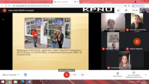05 травня 2021 р. відбулись звітні онлайн-конференції щодо проходження студентами навчальної психологічної практики фахівців першого бакалаврського рівня спеціальності 053 Психологія (Ps1-B19 групи) та виробничої практики на посаді психолога підготовки фахівців другого магістерського рівня спеціальності 053 Психологія (Ps1-M20 групи). Терміни проходження практик – з 29.03.2021 по 23.04.2021 р.