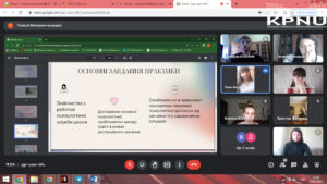 29 квітня 2022 року відбулася звітна онлайн-конференція за підсумками навчальної психологічної практики для студентів ІІ курсу Ps1-B20 групи на платформі Google Meet.