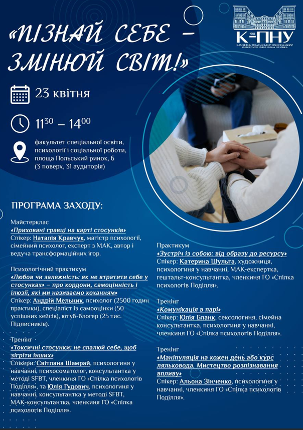 ВСЕУКРАЇНСЬКИЙ ДЕНЬ ПСИХОЛОГА: «Пізнай себе – змінюй світ!»